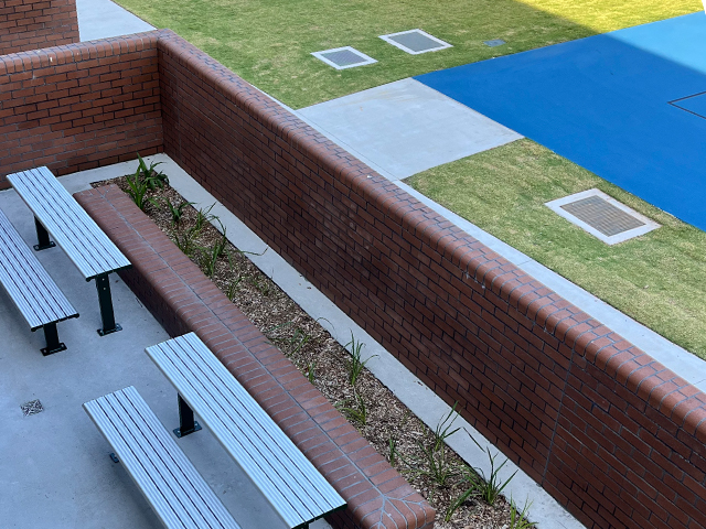 Park Furniture Australia designed, fabricated and installed custom outdoor seating for the new extension of Kingscliff Public School.