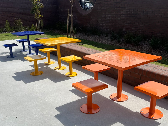 The completed project was met with enthusiastic approval from Kingscliff Public School. The vibrant outdoor seating provided students with a fun and functional space to relax, socialise, and engage in stimulating activities like chess. The thoughtful integration of shapes, colours, and educational elements created an environment that inspires creativity and connection, perfectly reflecting the school’s values. The use of premium aluminium ensured the outdoor furniture would remain in excellent condition for years to come, while the unique designs added a distinctive touch to the new section of the school. With the grand opening a resounding success, Kingscliff Public School now boasts outdoor spaces that set a new standard for modern educational environments.