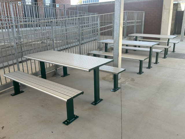 Durability and safety were top priorities for this project. PFA utilised premium aluminium and recycled plastic to craft the outdoor furniture, ensuring it could withstand constant use and exposure to the elements without sacrificing style. The new café and lunch settings were enhanced with integrated chessboards, offering students an opportunity for strategic play and mental engagement during breaks. The use of vibrant pastel colours added a cheerful touch, promoting a positive and welcoming atmosphere. For smaller, semi-circular areas, PFA incorporated circular settings to seamlessly fit the space while maintaining the design’s overall cohesion. These settings were both functional and visually striking, contributing to the school’s innovative approach to outdoor space design.