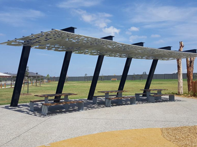 Megasaurus Park is now a popular community location within the estate. Because there is no other seating area there, our shelter provides valuable relief for families on hot days.