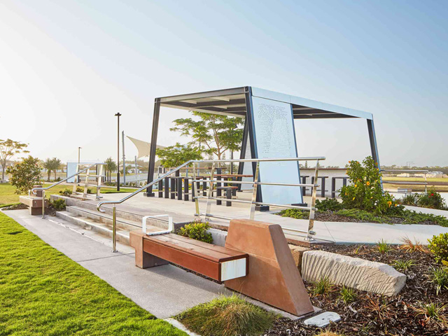 Street + Garden worked together with Anembo Consultants to deliver a specialised custom suite of furniture and structures for Pelican Waters Marina, Caloundra QLD. Members of the Pelican Waters master planned community can now enjoy this all-ages, all-abilities park furnished with custom seating, picnic table and bar settings and shelters. These were complemented by other urban elements including custom feature signage and illuminated bollards.
