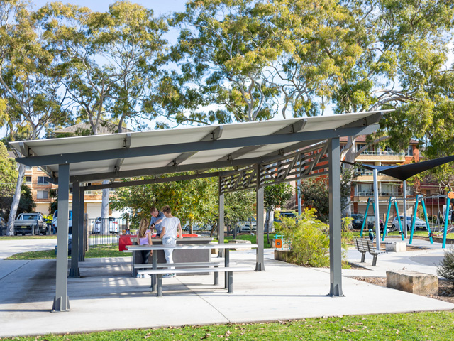 Penshurst Park prioritises community wellbeing, offering a welcoming environment for residents to enjoy and connect. GX Outdoors products like the Akora Skillion Shelter and Citistyle Park Seats provide comfortable spaces for relaxation, socialising and enjoying nature. These thoughtfully designed products promote a sense of belonging and happiness within the community.image2