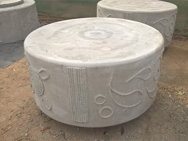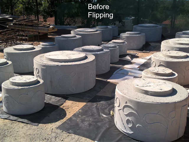 Round seats were cast in rubber moulds patterned with intricate Indigenous designs, adding a unique, artful twist. They were made in a range of sizes to suite both children and adults.