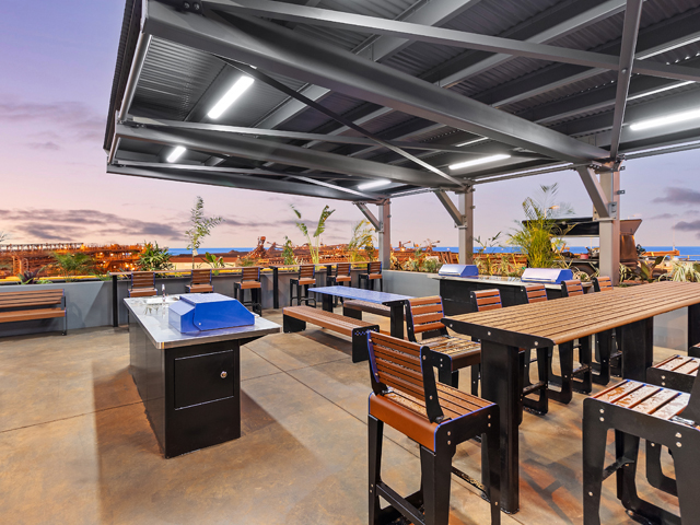 As design thinkers, the client envisioned a space that connected with the natural beauty of the surrounding Indian Ocean. GX worked with them to bring this vision to life, providing semi-customised tables, seating and BBQs in soothing ocean blues that reflected the calming tones of the water.