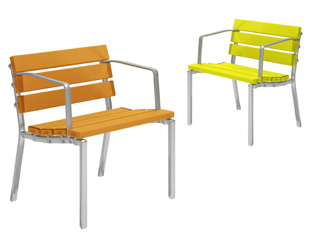 Inspired by the moveable chairs at the Luxembourg Gardens in Paris, users may bring chairs together or follow the shade for the perfect spot throughout the day.