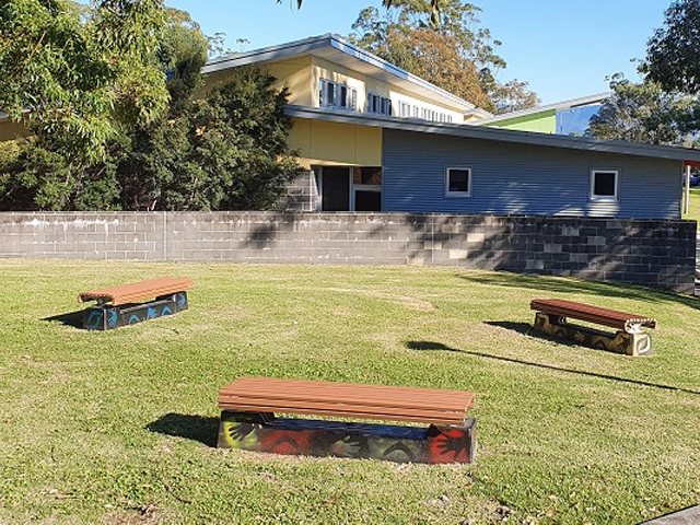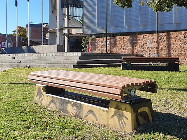 “The benches are part of the Reconciliation Week project and were a great success in creating indigenous yarning circles. The product is maintenance free, vandal-proof, has recycled content and the concrete bases enabled them to involve the community to apply indigenous artwork. They really look ‘Deadly’ (Indigenous for Awesome!).”