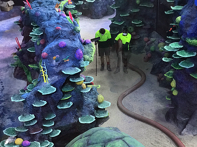 Project Manager Chris Furnari said, “Evolve Constructions took initiative in realising our machines would be the most efficient way to get the product into the space. They contracted us to complete the job. Our staff enjoyed contributing to the display. The Sea Life Sydney Aquarium’s refurbishment is incredible.”