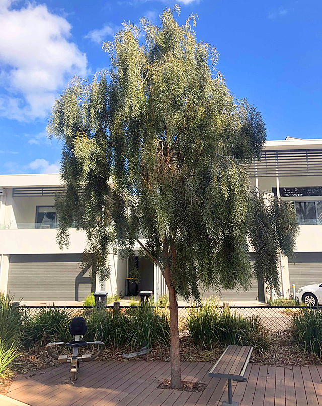 The silver-green foliage colour and gently weeping pendulous habit of Acacia pendula, also makes it a welcome feature among the monotony of greens often found in our urban landscapes.