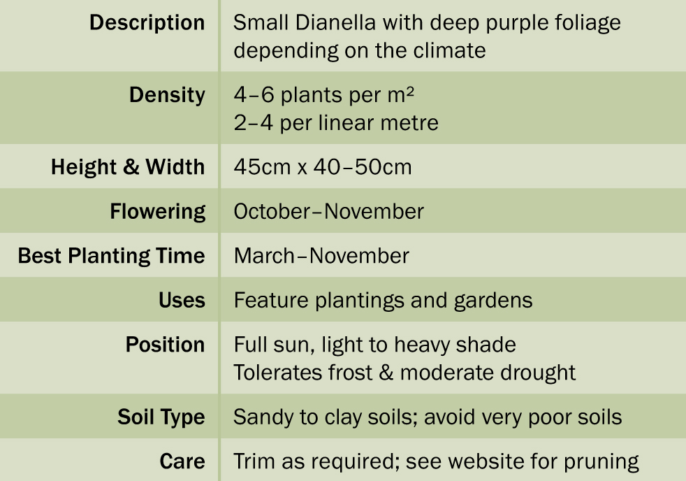 • Blaze™ Dianella is heat tolerant and will turn green in summer to cope with Australia’s famous hot summers.