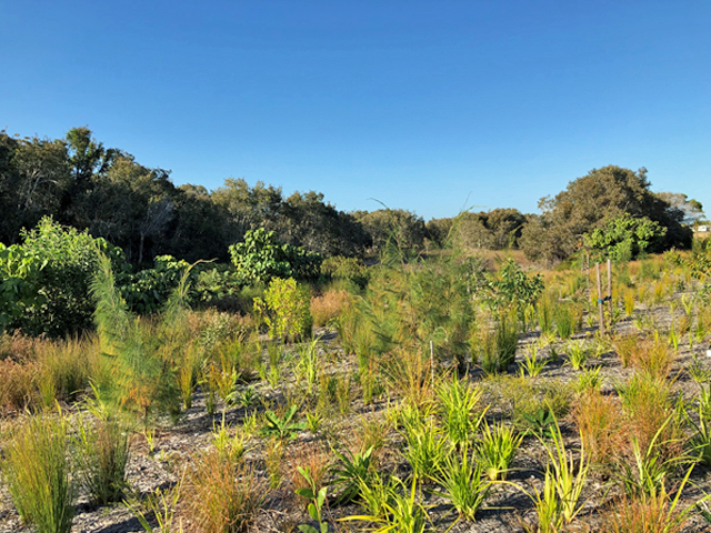 Across the site, fast growing plant species were selected to minimise the time sand dunes were exposed, limiting the potential of erosion and sediment issues to arise during construction. The long-term goal of the site is to return the crossing component to the original Regional Ecosystem classification.
