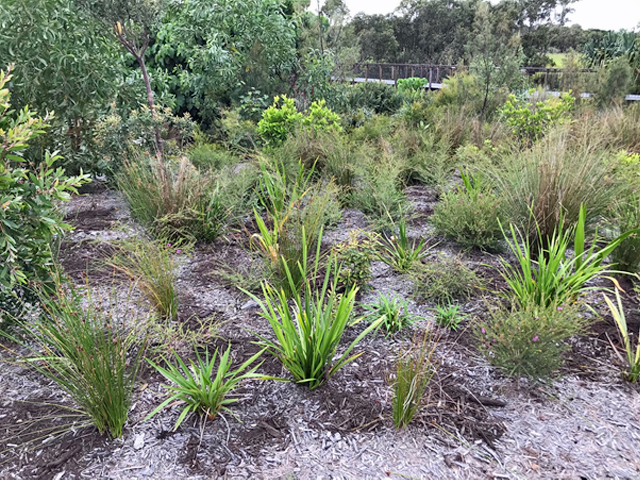 The rehabilitation buffer zone alongside the existing and expanded wallum wetland is a federally protected zone. Expansion of the wetland was undertaken by the Environmental Conservation Specialist translocating ‘biscuits’ of habitat from areas of the site impacted by construction. These biscuits were added to the existing wetland, expanding the size of the habitat.