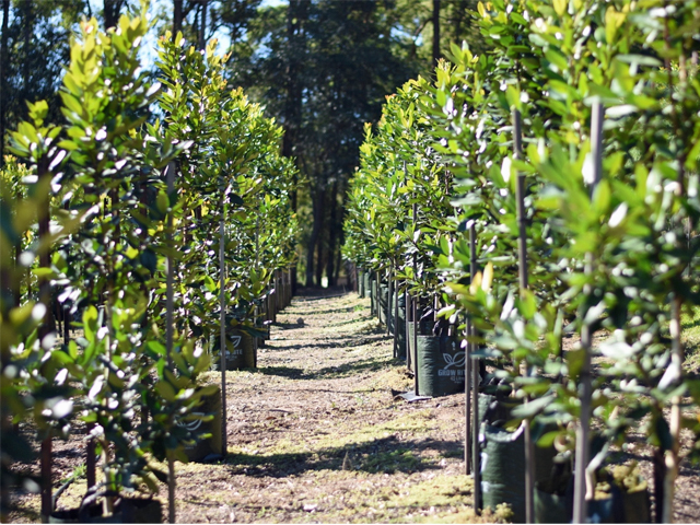 The nursery contract grow greenlife from 140mm to super-advanced sizes. Their tree stock is grown in accordance with AS 2303 – Australian Standard® – Tree stock for landscape use. Plant orders placed well in advance of planting time eliminates availability issues, the need for substitutes and the risk of inferior stock. Plants are guaranteed to arrive to site at their optimum planting size; allowing for vigorous, healthy growth in the landscape.