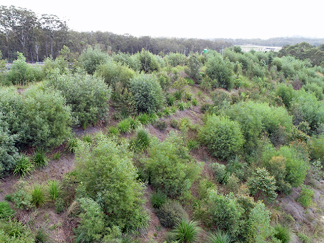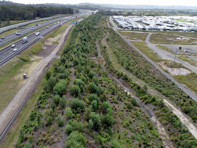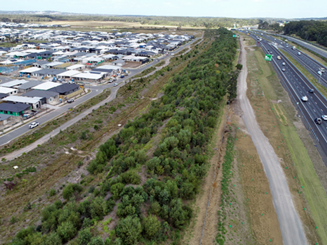 The Scenic Amenity and Highway Acoustic Buffer/South Drainage Channel (SAHAB) is the largest acoustic buffer to be built in southeast Queensland and with a minimum of 90 percent planting success across the mound, sets the new standard in infrastructure noise management. Planting was supported with a specific blend of fertilisers to give the plants the best chance of surviving the incredibly harsh condition experienced on both the east and western sides of the mound.