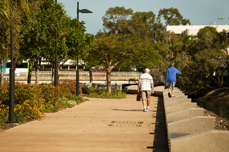 The promenade followed the $3.17 million Maroochydore Urban Improvement Strategy project, which was completed late 2008. The state government provided 50 per cent of the funding as part of the Regional Centres Program.