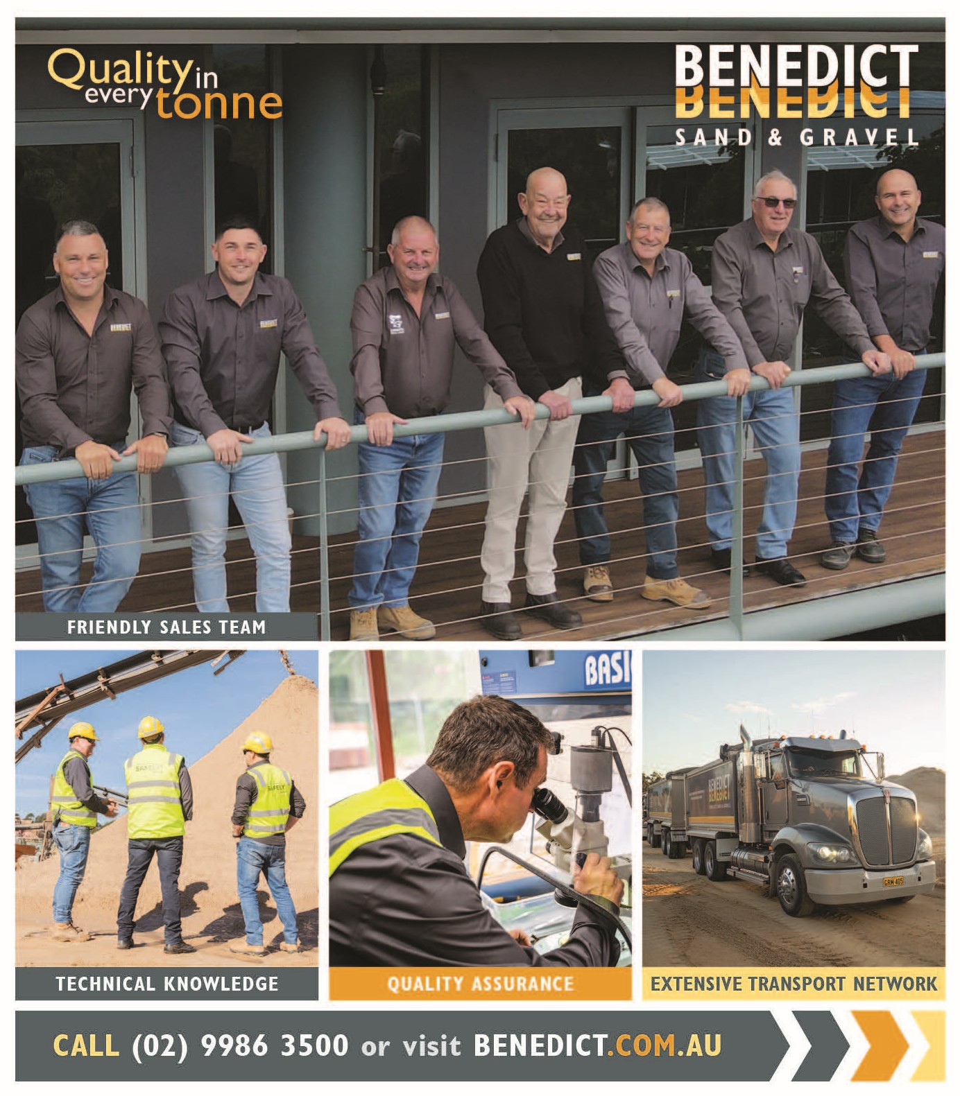 Benedict operates to AS/NZ ISO 9002 quality Australian Standards and is recognised as the "supplier of choice" to small and large projects alike. Benedict offer next day delivery for bulk materials across the greater Sydney metropolitan area (and beyond) and thanks to a highly reliable fleet of trucks, Benedict's extensive range of standard and custom-designed products are delivered on time, every time.