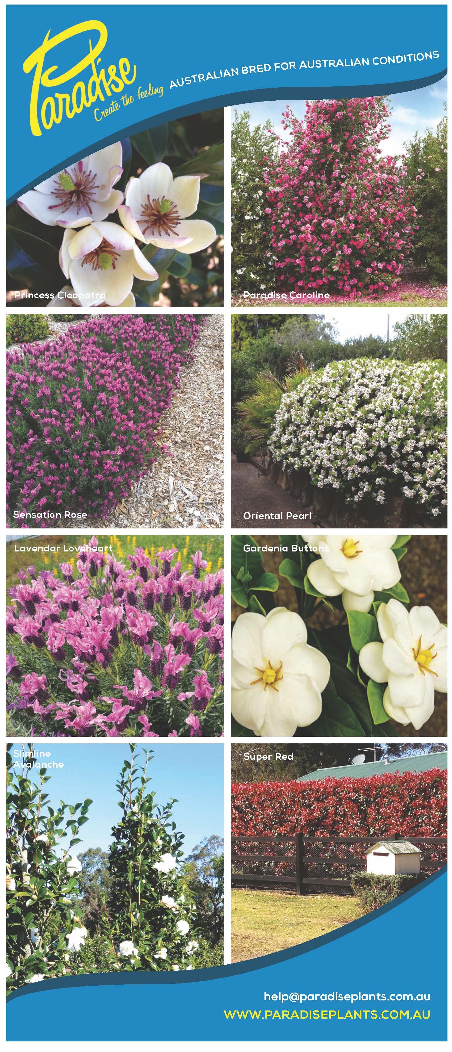 There are more than 100 Paradise plant varieties available throughout Australia, including: