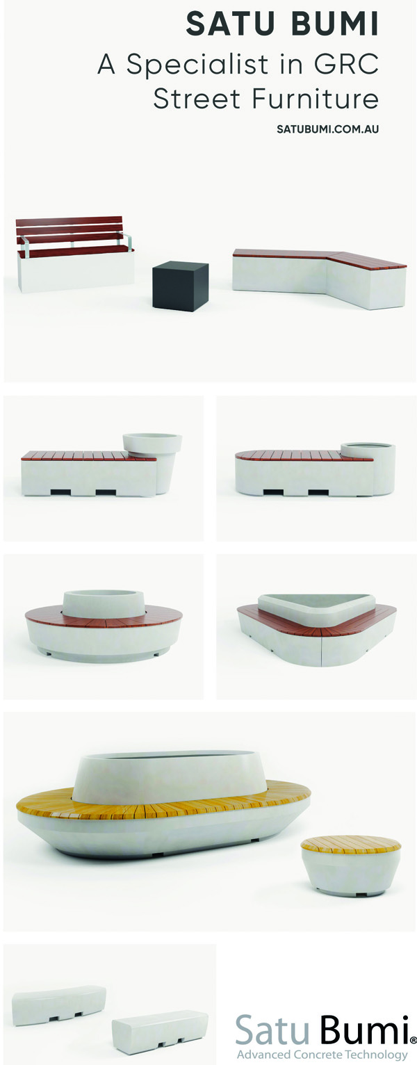 Satu Bumi has an intense focus on customer service and the manufacture of the highest quality street furniture. Since its inception in 2012, Satu Bumi has become one of the largest GRC manufacturers in the Southern Hemisphere, with a direct customer support team in Australia to service the Australian commercial market and a global network of distributors servicing the wholesale and retail markets in Europe, the Middle East, USA and Australasia.