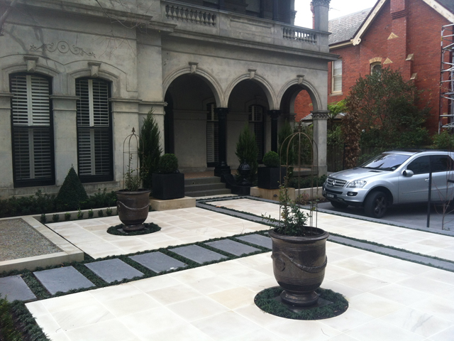 The garden features traditional Bluestone and ivory Sandstone which provide a high class finish on the outside hard surfaces. The design is a simple yet highly effective and practical example of natural elements working together.