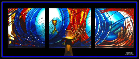 Terrance’s first venture into the art world was a privately commissioned stained glass window. Since then, he has had many commissions for stained glass windows from religious and other groups, as well as sacred furniture, including lecterns, baptismal fonts and altars.