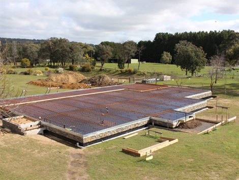 Recent Pentablock Project constructed by owner builders and repeat customers Craig and Christine in country Victoria. Craig and Christine are building their huge dream home with the use of Pentablock raw 190mm block for internal structural walls supporting suspended slab and Grampians stone faced 160mm blocks for lower external walls.