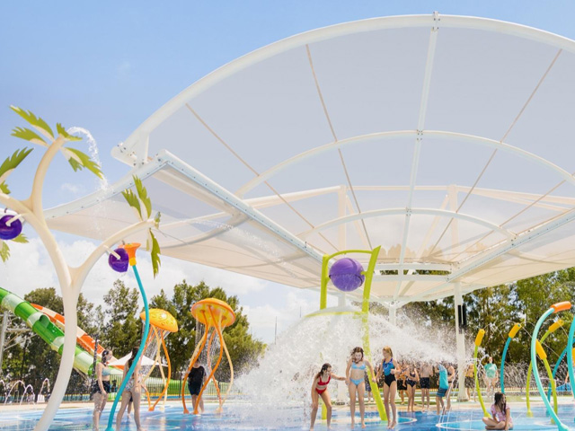 The entire splashpark was designed as zero depth and single level, accessible for people of all ages and abilities. Wheelchair accessible fish ball water blasters carry on the under-the-sea theming, their directional spray allowing users to interact and socialise with others on the splashpad.