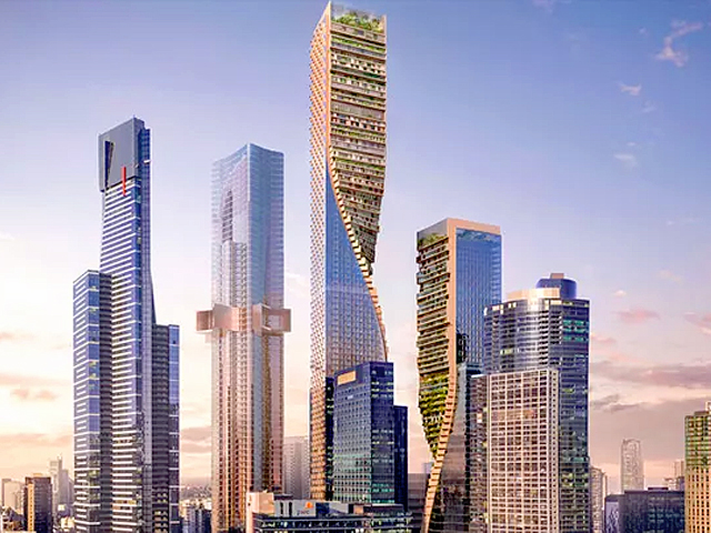 The taller of the two towers, an apartment skyscraper, will rise to 356.2 metres under the proposal, with the shorter of the towers comprising flexible commercial offices featuring both indoor and outdoor green terraces.