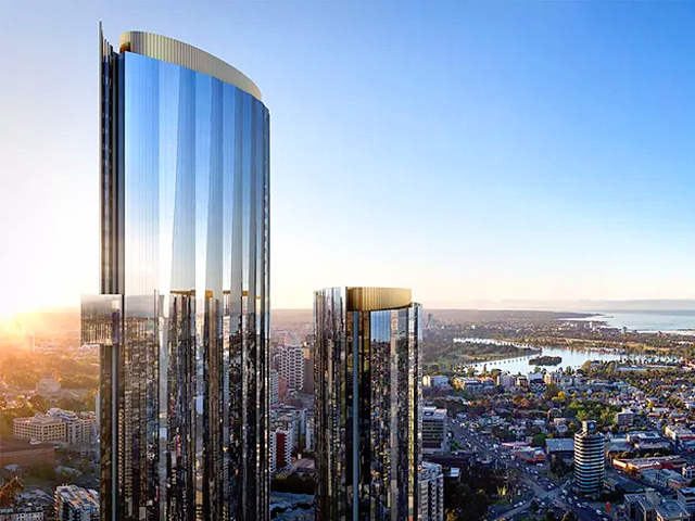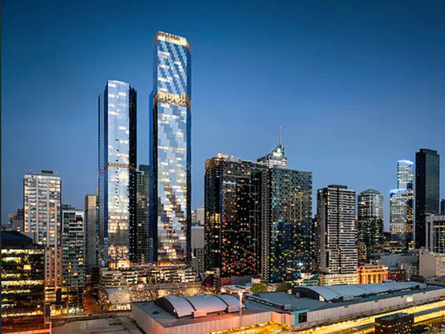 The 81-storey Tower 1, which will house the Ritz-Carlton, will be 281 metres tall and, once complete, will be the tallest hotel in Australia. The 64-storey Tower 2 will be 221 metres.