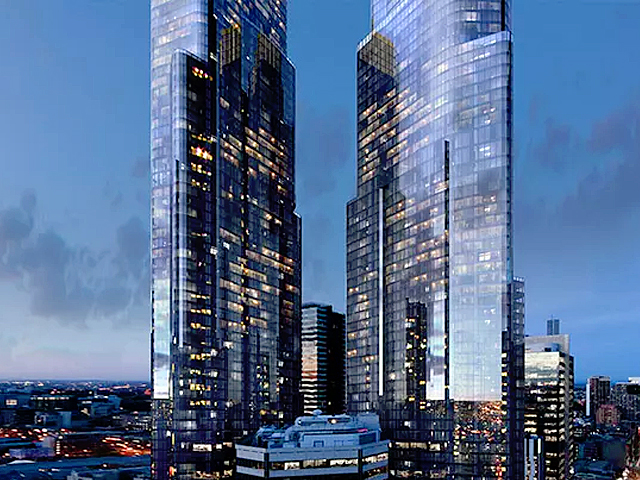 The towers will feature retail and commercial office suites, a public plaza with a laneway shopping precinct, restaurants and cinemas.