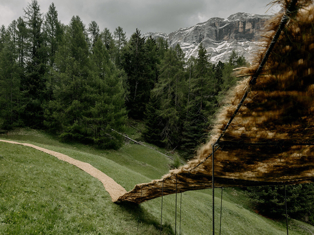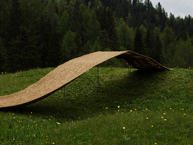 Trace of Land by ELSE Design reinterprets the hay bale as a spatial installation that unfolds across the pastures of Val Badia in the Italian Dolomites. Presented as part of SMACH 2025, the international open-air art biennale, the project transforms an agricultural object into a canopy-like structure that follows the terrain, offering places for shade, rest and gathering.