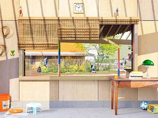 The existing window will be used to frame a new room for meetings and classrooms placed beneath a large shade structure and next to a greenhouse and tool shed in the Edgemere Coalition Community Garden. The Testbeds team is currently fundraising for its pilot project and looking for partners and collaborators for this and future projects.