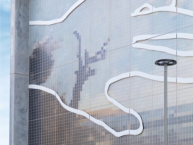 Mr Abdullah originally envisaged the artwork as a large-scale mosaic, however it quickly became clear that the project would require an innovative façade solution to meet safety regulations and achieve the scale required to clad the Arden Station exterior façade.
