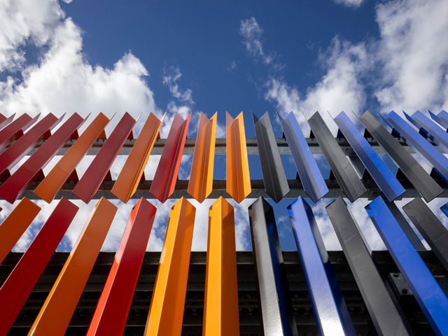 The facility sits lightly in an extensive landscaped area, with drought tolerant, shade-giving, and low maintenance planting promoting habitation of the very bird species that are the subject of the integrated art. The landscape acts as bio-filtration at multiple points, promoting stormwater absorption across the site. Fun facts about cats and dogs are inscribed into pavements to educate the public. Hygienic, durable, robust, low maintenance and easy-to-clean materials were chosen.