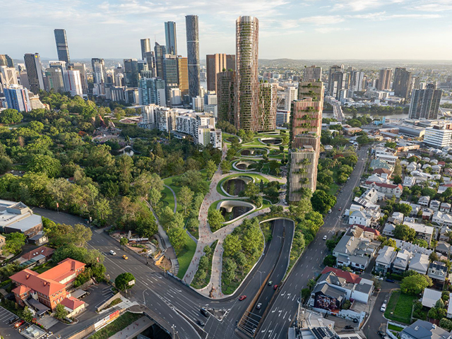 “The technology exists to build above the existing rail yards, and this initiative will create a large-scale elevated canopy that will carry earthworks, landscaping, plantings, trees and the other infrastructure required to develop new parklands," explains Proberts. “This would transform the Western edge of Brisbane’s CBD with this series of interlinked canopies acting as the foundations for landscaped gardens, walkways and bicycle paths.