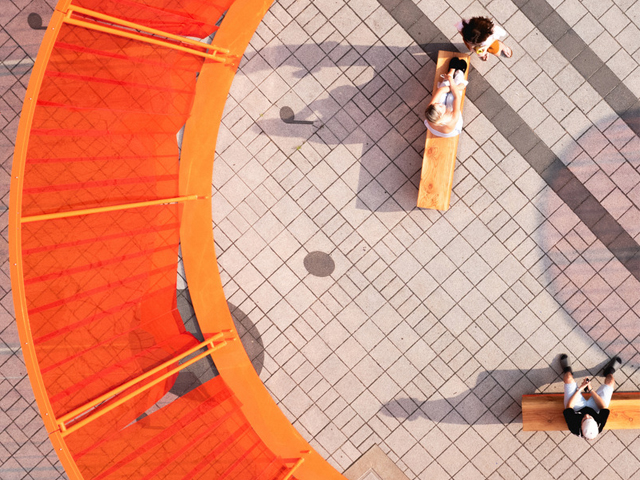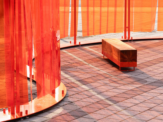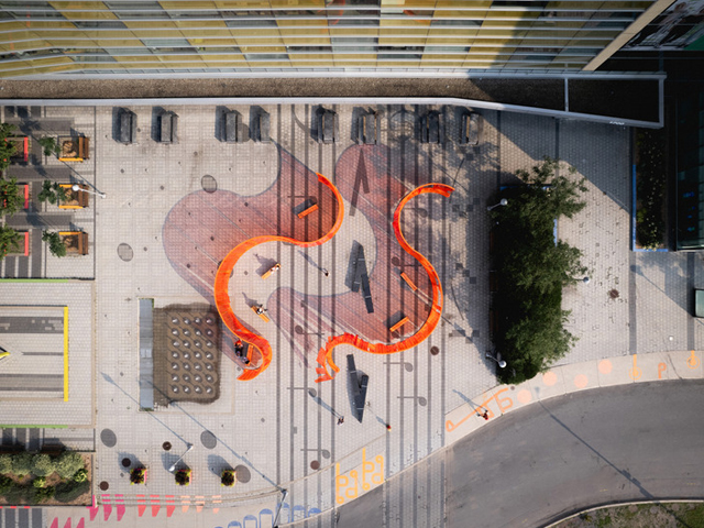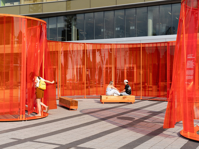 This striking curtain filters the space, reflects the movements of passersby, hosts public performances and transforms the site through shifting perspectives and evolving uses. This dynamic structure sparks curiosity, nurtures creativity and invites the public to become active participants in a shared, year-round experience.