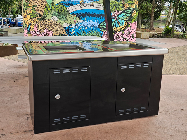 As part of the upgrade, Greenplate® supplied it’s Double Eco BBQ Cabinet, powder coated in Signal Black, to blend seamlessly with the park’s modern look. This energy efficient BBQ unit is now a key feature within the new park setting, which also includes feature shelters, a toilet block with custom mural, picnic tables, seating and a new carpark adjacent to the local hotel. Together, these elements have created a vibrant and accessible community space ideal for riverside relaxation.