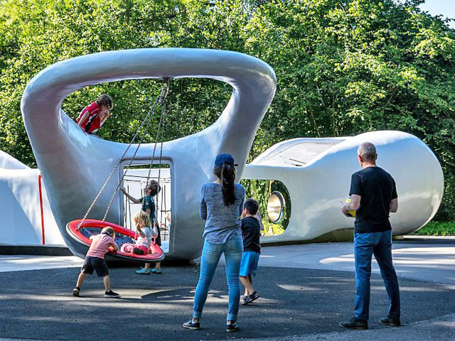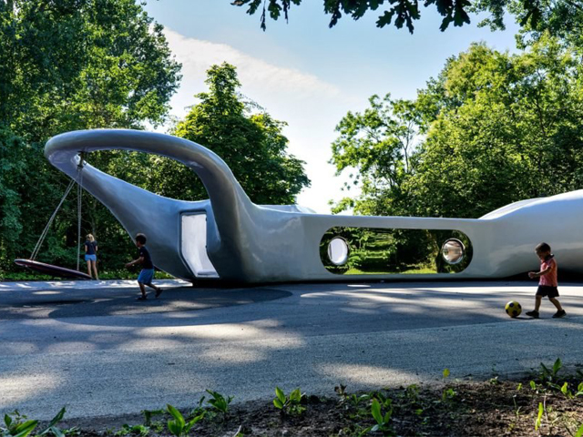 Design and engineering firm Carve have breathed new life into one of Amsterdam’s oldest parks with a playful new blob-like playground design. The eye-catching structure is a gigantic white and lilac abstract shape that just begs for children to climb aboard its weirdness and explore its many fun features.