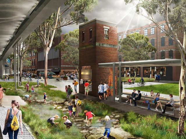 A key part of the plan will be the ‘Macaulay Terraces’, an exciting new public space that sits between Macaulay train station the Moonee Ponds Creek. It will be both a public park and a flood resiliency system, as the terraced landscape would capture the stormwater runoff from the streets and cleanse it before it enters the creek.