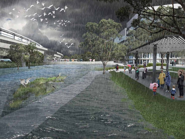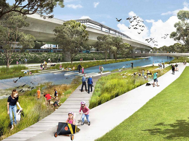 In addition to the terraces, revitalisation projects will rejuvenate sections of the creek to a natural, flood-resistant form. The concrete channel in the Travancore Park section of the creek would be removed and a chain of pongs with wetlands and native plants would help to naturalise the creek.