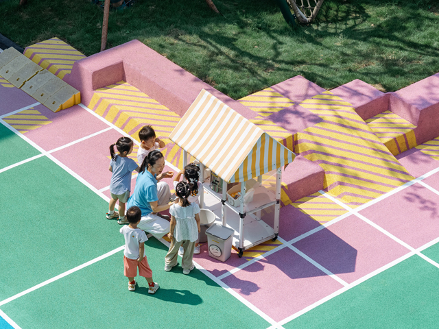 Our landscape design for educational spaces have consistently addressed students' "personal growth"4. In the design of the kindergarten, we further focused on how the outdoor environment enhances young children's cognitive and exploratory abilities. The "Flying Chess board" concept establishes a basic spatial system, helping children intuitively understand spatial structures and relations. The four distinct "Paths of Growth" not only align closely with the kindergarten's advanced educational philosophy but also enable personal development through simple play. By incorporating appropriately non-linear layouts and designing flexible spaces, we actively encourage children to explore both the space itself and various spatial uses. We firmly believe that the children learning and playing in the Kindergarten will grow into a new generation who cares for nature, passionate about life, eager to explore, possess sound character and healthy body.