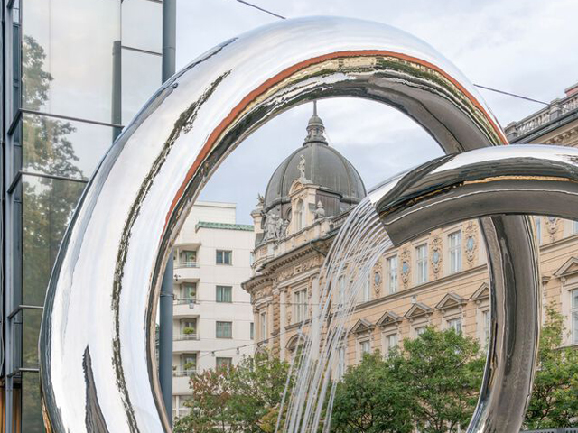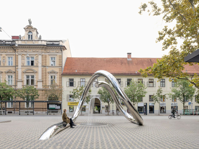 Designed as a piece of public art, this water sculpture in Slovenia is designed to be engaged with and experienced. Providing both a constant flow of water and a space to stop and sit, the fountain encourages passersby to stop and engage with nature in the middle of the hustle and bustle of the CBD.