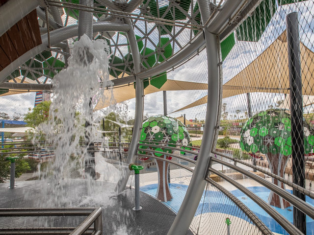 A destination splashpark in Queensland brings much needed aquatic amenity to the area to offset the tropical climate.