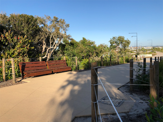 Constructed by rehabilitation specialists Evolve Environmental Solutions, the Dune Crossing aids residents, Surf Life Saving Queensland and emergency services to access the beach through a sensitive landscape. Traversing the hind dune Melaleuca forests, dunal Banksi and Pandanus community, as well as Spinifex grass to get to the ocean, this integrated walkway is an important infrastructure route for protecting the environment and incorporating functionality into the newly developed region.