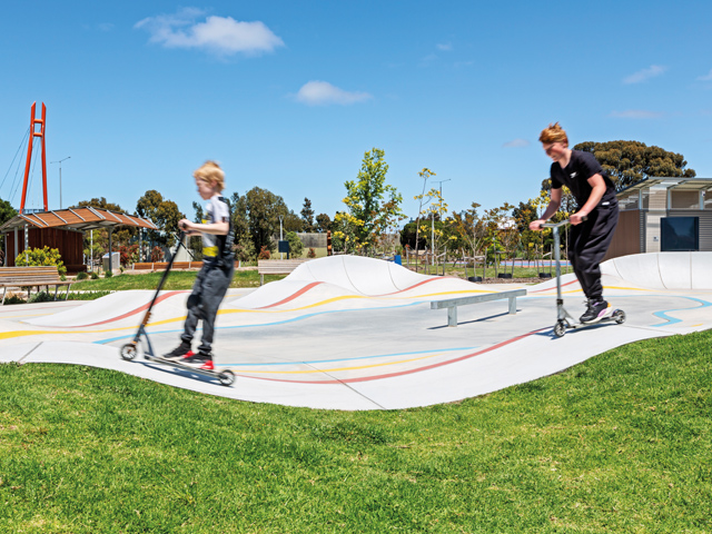 Parkitect’s modular structure takes the guesswork and the complexity out of designing a customised track. “Because it doesn’t require any specialist knowledge, it’s easy to specify,” stated Chris Connors, Victorian Regional Manager of JMac Constructions, the company that installed the pump track.