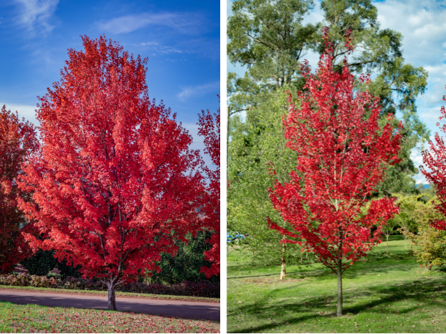 Acer rubrum October Glory® (left) and Acer rubrum 'Frank Jr’ Redpointe (right)