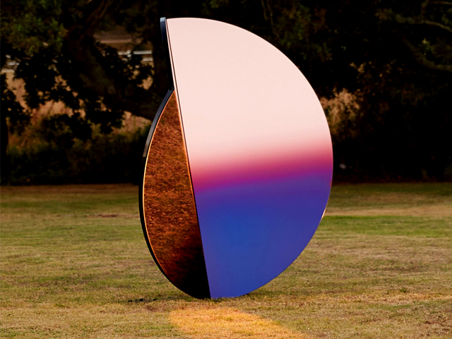 Called Folded Skies, the sculpture is formed of three structures made of interlocking two-metre-high mirrors, tinted to match the light created by the pollution in the city's mine dumps. It was installed at the Spier Wine Estate in Stellenbosch as part of the Spier Light Art Festival.