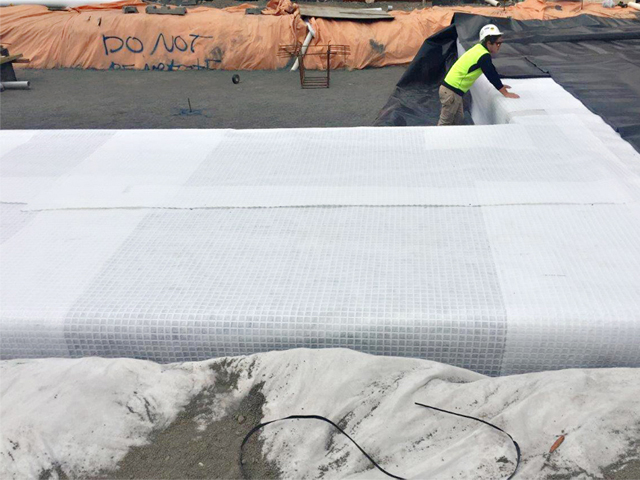 In addition to intercepting rainwater for immediate irrigation, Hassell also sought a system to store excess rainwater underground – both for irrigation on-demand and for reuse within the complex. Citygreen developed an innovative underground water storage solution by installing several impermeable welded liners beneath the plaza to act as water storage tanks. These liners are supported by skeletal structures constructed from stratavault modules. This enables international engineering firm, Arup, to create tanks in irregular shapes to fit perfectly around the existing infrastructure. Each liner is protected by cushioning layers and connected by a network of pipes that feed stormwater into the tanks and then drain water out for irrigation and reuse.