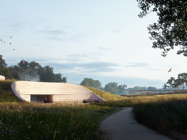 Connecting each of the spaces will be a network of interweaving and meandering paths carved through the site's landscape. These were determined through an observation of the historical movement of animals across the landscape. Also included in the design is an amphitheatre, along with wildflower and grassland gardens.
