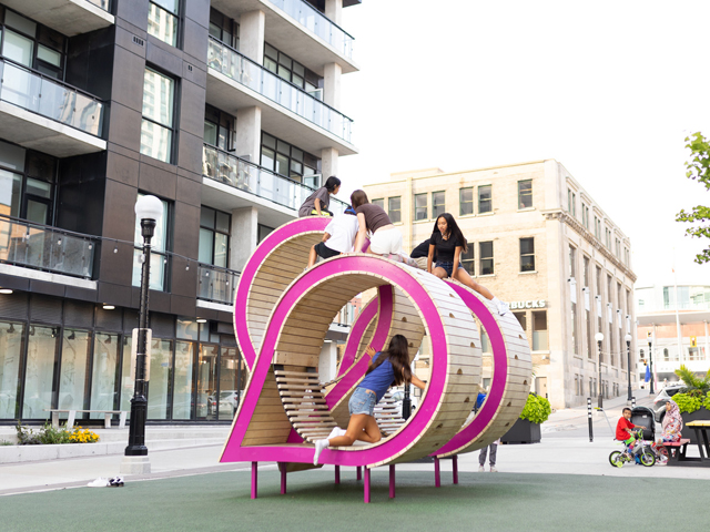 The Hangout Heart in Kitchener, Canada, is one of the best examples of this. Created by Earthscape Play, the Heart is a bold pink landmark co-designed through workshops and storyboarding with teenage girls. It isn’t a playground or a sports court. Instead, it offers what girls said they wanted most: a place for connection, conversation and play.