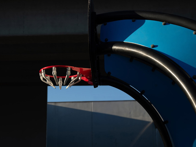 Infinet’s geometry takes cues from classic woven nets, reimagined in a structured, architectural form that fits seamlessly into public settings. Its design balances visibility with simplicity—conveying care and investment through clean, intentional lines. The hoop and fin assembly is designed to complement public space—not overpower it. It signals quality without demanding attention.