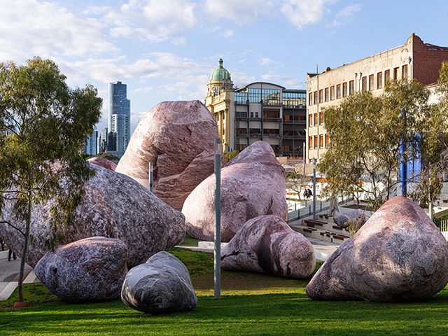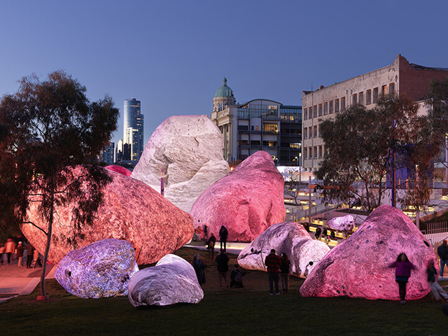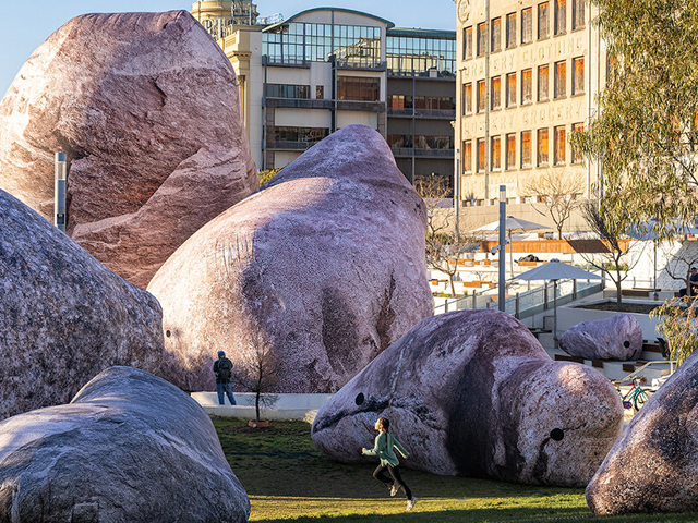 INFLATABLE ROCK ART INSTALLATION CONTRASTS PRAHRAN'S URBAN SURROUNDS
